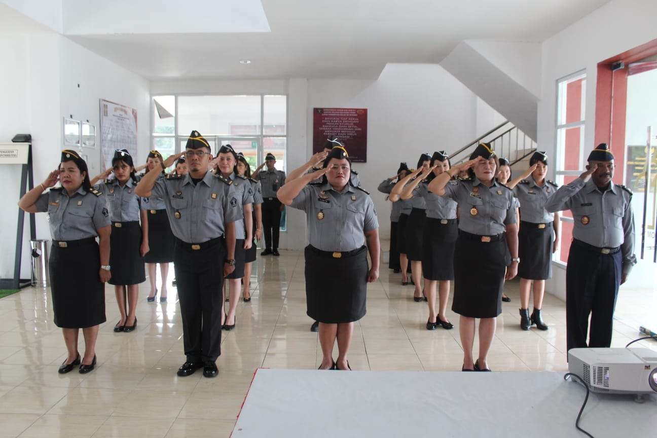 Pegawai di lingkungan Kementerian Hukum dan HAM, terutama di Ditjen Pemasyarakatan, mengenakan seragam khas yang juga menunjukkan identitas kelembagaan.